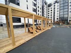 Закрытая придомовая территория. Есть большая детская экоплощадка и места отдыха. Большое количество парковочных мест.